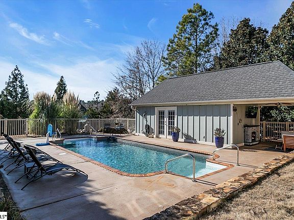 **OPEN HOUSE, SATURDAY, DECEMBER 20TH, 1:00PM-3:00PM** This Tuscan-inspired residence is a rare expression of architectural intention, where Old World influence meets thoughtful craftsmanship and everyday livability within the Woodfin Ridge community. From the arched foyer and patterned hardwood floors to solid wood doors, crown molding, iron-railed staircase, and cathedral ceilings with wood accents, the home reflects timeless European design throughout. Coffered ceilings in both the living room and primary suite add depth and scale, while arched openings create a natural, well-balanced flow between spaces. The living room is anchored by a stone fireplace and layered architectural details, and the kitchen serves as a true gathering space with a five-burner gas range, built-in oven and microwave, pot filler, copper textured sink, KitchenAid pull-out drawer dishwasher, and trash compactor. The sunroom continues the Tuscan aesthetic with exposed painted brick, beadboard ceiling, arched doorways, and abundant natural light. The main-level primary suite offers a refined retreat with a custom walk-in closet with double doors and a spa-inspired bathroom featuring an arched tile shower, a classic claw-foot soaking tub, and separate vanities. Outdoor living feels like a private retreat with a sparkling in-ground pool featuring an upgraded 27-mil liner and smart pool pump for ease of maintenance, complemented by a private pool house with a bedroom, full bathroom, kitchenette, and newer HVAC and water heater, while still preserving level yard space beyond the pool for play, pets, and everyday enjoyment. Located within Woodfin Ridge, residents enjoy access to an 18-hole golf course set among creeks, Lake Bowen, and mountain views, along with a junior Olympic swimming pool, children’s pool, tennis courts, playground, full practice facilities, and an 8,500-square-foot clubhouse featuring a full-service restaurant, bar, and social spaces that foster a strong sense of community and an elevated lifestyle. Convenient to shopping, dining, Lake Bowen, and major interstates in the Inman and Boiling Springs area, this home is best experienced in person to fully appreciate the quality, character, and setting.