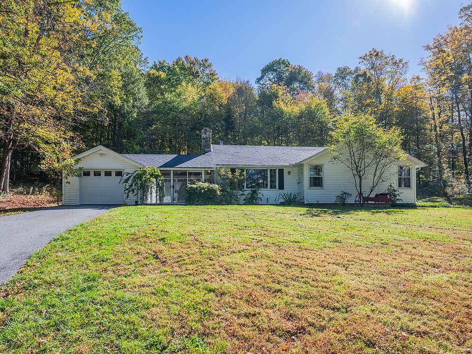 Looking for peace, privacy and small-town charm? Welcome to this delightful two-bedroom, one-bathroom Ranch tucked away in the quiet town of Woodbury. Step into a beautifully tiled breezeway- a cozy spot to relax with a book or enjoy your morning coffee. Just off the breezeway, sliding glass doors open to a brick patio, ideal for entertaining or simply enjoying the outdoors. Inside, the living room features original hardwood floors, a fireplace, and a wood burning stove. The spacious kitchen offers plenty of room for dining and has been updated with granite countertops and a stylish tile backsplash. Down the hall, you'll find two bedrooms with hardwood floors and generously sized closets, along with an updated bath that brings a clean and modern feel. The home also includes a one-car attached garage with additional shed-style storage, offering room for tools, equipment or seasonal items. Set on a private 1.5 acre lot, this home is the perfect blend of charm, character and seclusion. Located just minutes from downtown shopping, restaurants and hiking trails. Schedule your showing today!