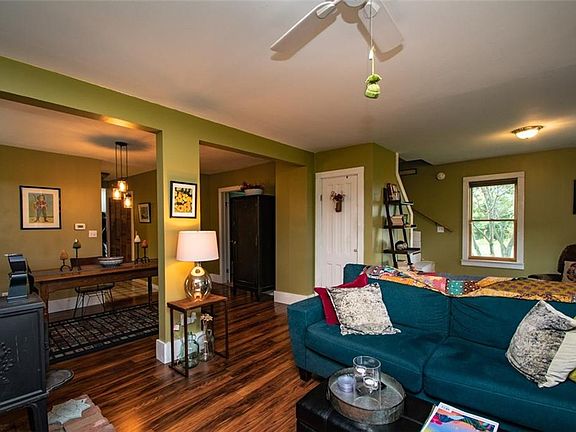 Lovingly and thoughtfully updated country home on a beautiful almost-one-acre lot. Gorgeous hardwood floors in the living area. The country kitchen is equipped with all the mod cons yet retains its vintage charm. The large master bedroom is conveniently located on the first floor. You will be thrilled with the delightfully updated family bathroom. First floor laundry! The 2nd floor offers 2 additional bedrooms, freshly painted. A state of the art security system provides peace of mind. Furnace, water heater and central air all new within the last 2 years. Most of the windows have been replaced. Enjoy the peaceful views from the deck including the chickens and coup which can be included in the sale. Septic has just been cleaned. This home has obviously been lovingly cared for.