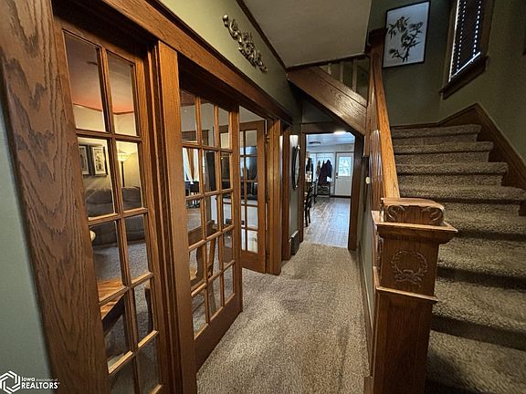 JUST LISTED! Warm & Inviting 3 bdrm, 1.5 bath home has so much character! From the wide woodwork, bannister heading to the 2nd level, to the French Doors that open into your Living area. All 3 bdrms are located on 2nd level upstairs along with the beautiful, unique Full bathroom. This home has had MANY updates over the past 4 years including: In 2022 new siding on the garage, new overhead door and door opener. Also new roof on house that year. In 2023 Eleven (11) new Windows, also new water heater. The Refrigerator, Stove & Dishwasher were new in 2020. Double Detached garage. Nice sized lot! Must see this home!