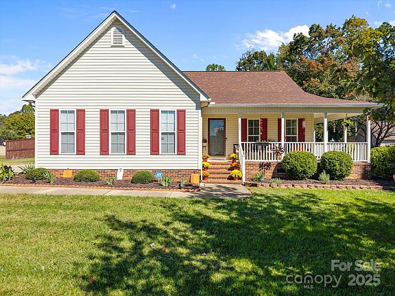 Charming 3-bedroom, 2-bath ranch with side-load garage nestled on a spacious half-acre corner lot in a peaceful country setting—No HOA - USDA Eligible! Enjoy relaxing on the wraparound porch or entertaining in the private, fenced backyard featuring a large above-ground pool with extensive decking (replaced 2024), a covered gazebo for shade, a hot tub, a jumbo, custom 3-tier playset, updated cozy fire pit (Nov 2024), and a 12x24 outbuilding with electricity—perfect for a workshop or extra storage. Inside, the kitchen shines with granite countertops, granite backsplash, and stainless steel appliances. All bedrooms are generously sized, featuring newer carpet. The primary suite offers two closets and a private bath. Major updates include a newer roof, HVAC, and water heater; septic tank inspected and pumped (May 2023); new electrical meter box (2024); garage door opener (June 2024); garage door electrical and springs replaced (June 2025); and several new window screens scheduled for installation (Nov 2025). Refrigerator, washer, and dryer convey.