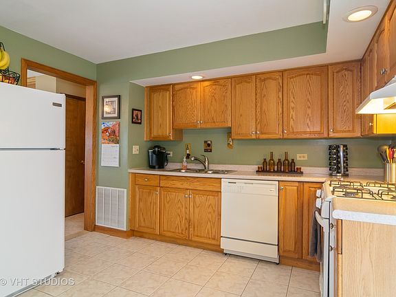 This remodeled ranch home has 3 bedrooms & 1-1/2 bathrooms. Hard surface flooring throughout the entire house! Living room has custom built in entertainment area and a bow window. The home has been expanded with a two-car heated garage and laundry room/storage room in garage. Garage also has an access to the attic for extra storage. Private fenced backyard with large concrete patio and storage shed. Also, room to park four cars in the driveway! Parks and schools are just around the corner!