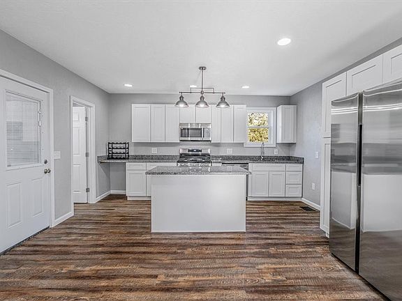 Step inside this spacious 3-bedroom, 2 bath home offering plenty of storage both inside & out! Inside, you’ll love the open-concept layout, brand-new kitchen featuring an abundance of cabinet & countertop space including a center island & a bright eat-in dining area that flows seamlessly into the living room! Enjoy the convenience of a first-floor laundry room that can easily double as an extra pantry opposite the washer and dryer!