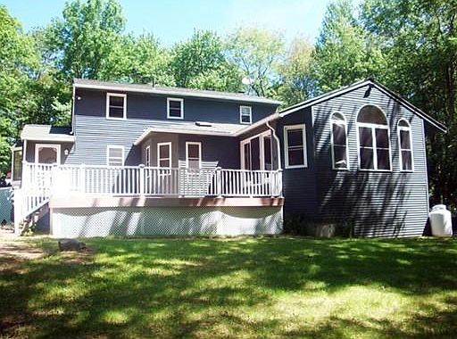 Spacious Gambrel style home situated on a private 3 acre wooded lot with in-ground pool for your summer enjoyment. Gorgeous Vaulted Family Room addition made for entertaining with propane fireplace, wet bar, skylights and hardwood flooring. A two car garage is tucked under this room, a third bay was original to the home. Many nice features include freshly painted rooms, hardwood floors, oak staircase, & ceiling fans. Living Room has a brick fireplace. Formal Dining Room has hardwood floor. Kitchen offers dual fuel propane Range, Dishwasher, Microwave vent hood & Refrigerator and Dinette area with bay window. A door here leads to the rebuilt composite deck and pool area. An office space on the first floor has a closet for storage. Hollywood bath up opens to the hall & front-to-back Master Bedroom with two double closets. Updates include replacement windows, 10 yr old pool liner, 8-9 yr old roof, 1 yr old hot water heater. A wood stove in the basement helps with the electric heat.