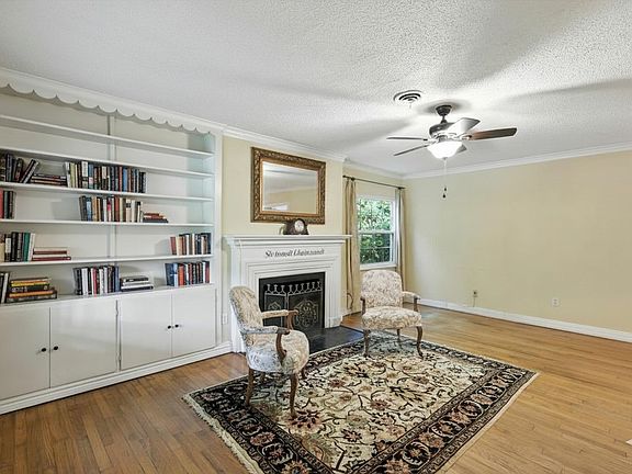 Original hardwood floors run throughout the main living areas, complemented by a cozy wood-burning fireplace in the formal living space—perfect for relaxing evenings or hosting guests. The layout is thoughtfully designed, providing a seamless flow between the living, dining, and kitchen spaces.The second living space is right off the kitchen and provides plenty of room to gather with friends and loved ones or just relax after a long day. Retreat to your private sanctuary in this expansive primary bedroom with en suite bath, thoughtfully designed for both comfort and style. A generous sitting area in the primary bedroom offers the perfect space to unwind with a book, enjoy morning coffee, or create a cozy lounge or workspace.
