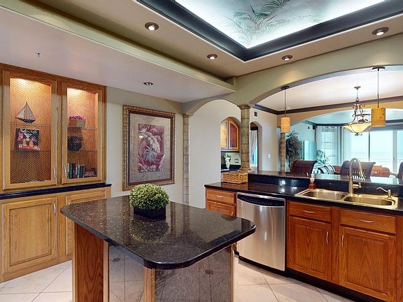 This impeccable 3 bedroom, 2 bath, 6th floor condo at Legacy Towers in Gulfport, Mississippi is filled with luxurious touches. This stunningly upgraded beachfront abode was featured on HGTV and has been expertly crafted with amazing custom high end finishes. This unit includes cove lighting, built-in speakers, ceilings with murals, carved lions in the breakfast bar, pillars that look like palm tree trunks, a one of a kind master bathroom, a covered ground floor garage parking space and much more. There are so many interesting details along with a gorgeous view, you have to see it to appreciate them all. This condo is located in a gated community featuring lush tropical landscaping. The feel is one that would rival first-class resorts. With two large outdoor pools, there is plenty of space for splashing around and having fun, and when the weather turns cooler you can continue the fun in the indoor pool. There are also two soothing saunas and a hot tub for when you just want to relax. Host a party in one of two club rooms and prepare or cater food in the communal kitchen nearby, or reserve the theater room to watch the big game with all your friends and family. The Legacy Towers also provides a well-appointed conference room for those occasions when a business environment is required and a spacious gym with a plethora of equipment. Call today to see this breathtaking Gulfport getaway.