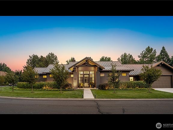 Discover refined modern living in Crosshaven, steps from the WW Golf & Country Club. Designed by architect Richard Bruskrud, interiors by Poe Perry and built by Botimer Construction in 2019, this custom home features soaring 12–14 ft ceilings, walls of glass, and a sun-oriented design. Everything was designed with intention- the copper roof and and paint colors integrate with surrounding trees, two ensuite BDRs include heated floors, soaking tubs and private patios. 3rd BDR/Office provides flexibility. The kitchen is sleek and streamlined. Set on a large corner lot along Stone Creek, combining privacy, nature, recreation and close proximity to world class wineries—it's a rare and timeless retreat in the heart of Walla Walla.
