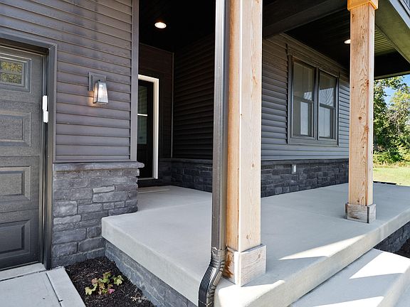 Covered front porchQuartz countertopsDouble vanitySliding glass doorSecondary bathStainless steel appliancesCustom built-in bookcases
