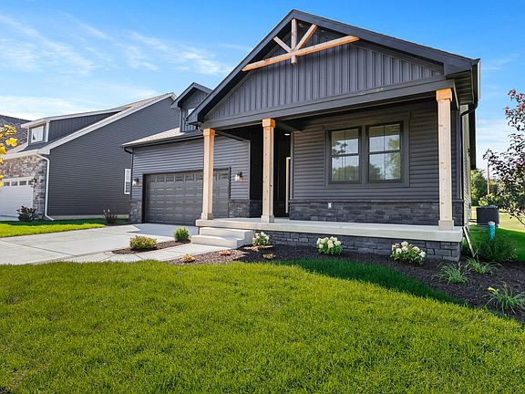 Move-in ready new construction ranch on a 0.36-acre lot! This open-concept home offers 3 bedrooms, 2 full baths, and a functional, modern layout with 9' ceilings on the main floor. The kitchen includes quartz countertops, stainless steel appliances (dishwasher & microwave), and a large island with seating space. A sliding glass door from the living room leads to a concrete patio for outdoor dining or relaxing, and a covered front porch provides a welcoming spot to unwind. The owner's suite features a double vanity, a glass-door shower with tile surround, and a 5x8' walk-in closet. The secondary bath is designed with a separate toilet/shower room and a second double bowl vanity. Durable laminate plank flooring runs through the kitchen, living, dining, and entry areas. Custom built-in bookcases frame the living room, and the mudroom/laundry combination includes a drop zone with built-in storage. The unfinished basement has an egress window and roughed-in plumbing, ready for future expansion. The two-car garage is fully insulated and finished. Nestled in a quiet neighborhood just steps from the Iron Horse Heritage Trail and only minutes from the Indiana Dunes National Park, this home offers a peaceful, nature-filled setting while still being close to shopping, restaurants, schools, and expressway access. With quick connections to I-94 and the 80/90 Toll Road, it's a fantastic location for commuters!