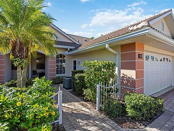 Discover Your Dream Florida Lifestyle! Enjoy the ease of maintenance-free living in this beautifully cared-for 2-bedroom + bonus room, 2-bath villa located in the sought-after Bobcat Community. A new tile roof (2024) provides peace of mind, while tile flooring throughout adds to the effortless lifestyle. This home will not be on the market long with all the renovations including updated white cabinet kitchen, SS appliances, granite counter tops, updated light fixtures, crown molding, recessed lighting, and much more. The neutral fresh paint and meticulous care of the home make it move in ready! The open floor plan offers soaring ceilings and triple sliding patio doors that fill the home with natural light. While officially a 2-bedroom, the versatile dining room can easily serve as an office or sitting room. The split layout provides privacy for guests, with the spacious primary suite tucked away at the rear, featuring French doors, a walk-in closet, dual sinks, Roman shower, and private water closet. Relax on the screened lanai overlooking peaceful green space and pond with desirable southwest exposure for nightly sunsets. Enjoy a 2-car garage, freshly painted interior (2020), and HOA-scheduled exterior painting in Jan. 2026 to complement the new roof. The AC and water heater are 2018 adding to the value of this home. Just across the street from the private villa pool and a short golf cart ride to the main clubhouse pool, this pet-friendly, golf-cart community offers resort-style amenities including a fitness center, tennis, pickleball, and 24-hour gated security. Conveniently located minutes from I-75, shopping, and dining.