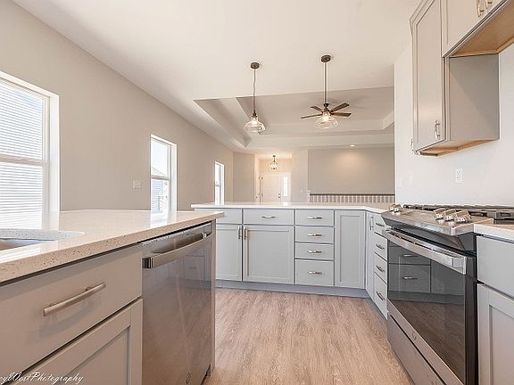 Custom-built, half ranch duplex currently under construction with a December delivery. Spacious layout offering 1571 square feet & abundance of natural light. Two bedrooms, two full baths and a den. 9-foot ceilings, oversize baseboard trim, two-panel doors, Quartz counter tops and luxury planked vinyl flooring. The double tray ceiling in the family room enhances the sense of space. The owner suite has 36-inch door openings & nicely designed en-suite with walk-in closet. Eat in kitchen with island, breakfast bar, pantry closet, dovetail soft-close cabinetry & sliding doors leading to the deck. Additionally, the full basement with rough-in plumbing and egress window offers endless possibilities for customization and expansion. Established neighborhood with walking/bike path. 1 year builder warranty. Photos are from a previous build. Still time to choose your finishes and make this home uniquely yours before completion! Additional lots & floorplans available.