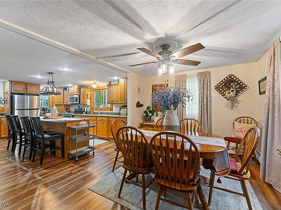 Acreage!! Don't wait to see this beautiful Ranch Style home sitting on approx. 5 acres in the coveted Springfield Twp. area!!! This property boasts a 6+++ car garage, with front and back entry and 100-amp service perfect for storing all the toys, or perhaps, converting to a horse barn with multiple stalls plus another shed just in case for more storage. A Pavilion 11 X 16 graces the property, including a large front covered Porch 10 X 20, side porch with trex decking/vinyl railing, that is easy to maintain! At the rear of this home a lovely concrete patio, all of this just complements the property allowing for comfortable outdoor entertaining and a promise of peaceful sunsets and sunrises as well as additional entertaining space where everyone can spread out comfortably. The Roof, Vinyl siding, Stone accents, windows, hot water tank, Mahoning Valley Water Treatment System and septic are all newer affording homeowners peace of mind. Upon entering the home, you are met with an open living room, updated kitchen, and dining area. The Kitchen boasts heated radiant flooring, a walk-in pantry, many cabinets and a large island, with wood style luxury laminate flooring throughout the entire First Floor. Lots of natural lighting in this home. The Primary Bedroom comes complete with a walk-in closet, while the Primary bathroom, totally remodeled, offers a soaking tub and 4 ft. walk in ceramic shower!! As Above So Below!!!! The full, walk-out Lower Level is completely finished with Berber carpet throughout along with a full kitchen, dining/office area, living area, rec room, bedroom and full bath. There is plenty of electricity to keep this home going with a newer 200 AMP service. Insulation is up to code. Glass Block windows in the lower level. All the new appliances stay with this home including the washer and dryer. Reverse osmosis for drinking water.