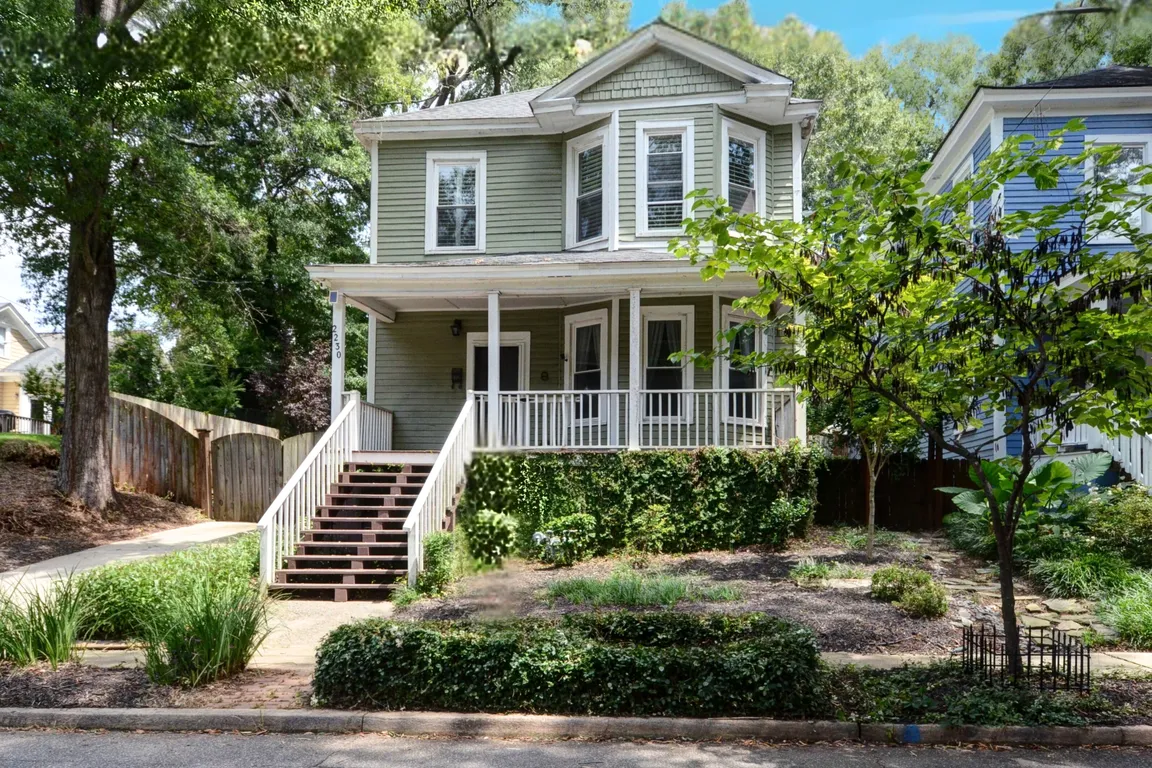 Cozy fireplaceVersatile sunroomInviting covered front porchLush landscapingStainless steel appliancesOpen-concept kitchenSitting area