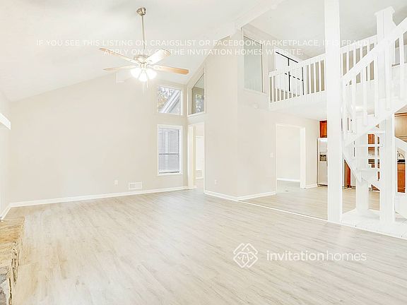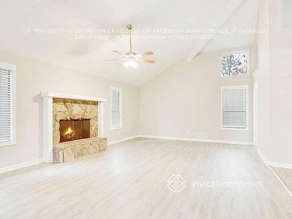 Home Features and Amenities: Air Conditioning, Deck, Fenced Yard, Fireplace, Garage, Long Lease Terms, Luxury Vinyl Plank, Pet Friendly, Smart Home, Stainless Steel Appliances, Vaulted Ceilings, W/D Hookups, and professionally managed by Invitation Homes.