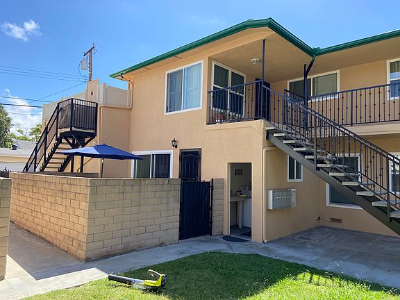 Beautiful tree-lined street in an EXCELLENT LOCATION. You can walk to Trader Joe's, Target, LA Fitness, restaurants, shopping, etc. Upper floor apartment is very clean and bright, featuring NEW flooring, NEW kitchen counter and sink, NEW security screen, ceiling fans, like new windows and sliding door, lots of storage space, and PRIVATE 1 car garage. Newly painted building is well kept and maintained. 1 year lease. Owner pays for water and sewer. Tenant pays all other utilities. NO smoking. NO pets.