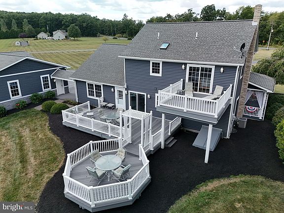 This breathtaking colonial 3 bedroom 3 and 1/2 bath home is situated over 5 acres of beautiful, manicured lawn in a private rural setting. The amazing improvements the owners have made are over the top! The entire house has luxurious ceramic tile and ceramic plank flooring. The in-floor radiant heat keeps the floor cozy warm on the coldest winter days, and the air conditioning keeps you cool on the hottest summer days. The entertainment room was remodeled in 2020 with Ceramic Plank tile, Quartz stone wall, matching Quartz built in large screen Tv and Fireplace, custom built bar and cabinetry. The updated stylish functional kitchen has an abundance of cabinet space and wraps it together with the elegance of granite counters, complemented by a luxurious backsplash of glass tile. Compete with a breakfast area with a view of the scenic back yard and access to the rear patio. the formal dining area leads to the cozy living room. The primary bedroom is well-designed and luxurious. A closet, with plenty of space and a private bathroom with double sinks, double cabinetry. The heat is zoned just for the bathrooms on the chilly morning when you don’t want to heat the entire house, a sliding patio door leads to a private 2nd Floor 12’ x 12’ Deck overlooking the back yard. The convenient 2nd floor laundry center and central vac lighten up the chores in this nearly 3000 sq.ft. of living space. The finished basement, with the convenience of a full bathroom, can serve multiple purposes, like home office, home gym, or guest room. The garage is one-of-a-kind! The attached 4 car garage features a full kitchen and a ½ bath with a tankless water heater, sectional sofa set-up living room with a large screen TV, epoxy coated floor, work bench and cabinetry for storage. A new addition was built in 2023 that features 5 large windows,72” French exterior doorway, a full stone wall with fireplace, a 2nd large screen TV, a 2nd full living room or home office that is heated and air conditioned. In 2023, the home received new vinyl siding, a stunning front door with sidelights, a sliding patio door, and updated trim, enhancing its exterior appeal. It features a breezy L-shaped front porch, a huge16’ x 32’ deck for grilling and entertaining, and an 8’ octagonal gazebo with vinyl railing, providing a perfect setting for guests to relax and enjoy the surroundings. The layout of these outdoor structures allows for breathtaking views of the sky, whether it’s a bright blue day, exquisite sunsets or a starry night. The landscaping surrounding the house and garage is expansive and attractive. There is a tranquil water garden filled with koi goldfish, along with a fountain and a waterfall. A large flagpole, which supports a 12'x18' American flag, is also surrounded by a matching decorative stone wall, adding to the property's charm and beauty. The paved driveway and parking lot are the icing on the cake although you won't want to leave the comforts of your charming estate once it's yours.
