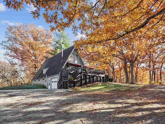 Make this stunning lake home your year-round retreat! Nestled in the woods, this classic A-frame blends rustic charm with modern comfort. Step onto the beautifully maintained deck and feel the peace that surrounds you. Inside, the spacious living room features warm wood beams, soaring vaulted ceilings, and a cozy gas stove—perfect for cool evenings. The kitchen shines with original woodwork and updated appliances, and the formal dining room offers built-ins for extra storage. The main floor includes a full bath and a large primary bedroom with plenty of closet space and a private back deck. Upstairs, enjoy a versatile loft and a second bedroom with its own balcony overlooking the trees. The lower level adds even more living space with a recreation room, vintage bar, updated full bath, laundry, and non-egress bedroom. Outside, you'll find an extra-deep garage with a new concrete drive and a 26x30 outbuilding for all your lake toys. Sale also includes the Parcel #0706102007 a 0.643 Acre Lot to the E of the home. Don’t wait—schedule your showing today and make this lake home yours!