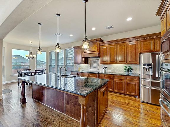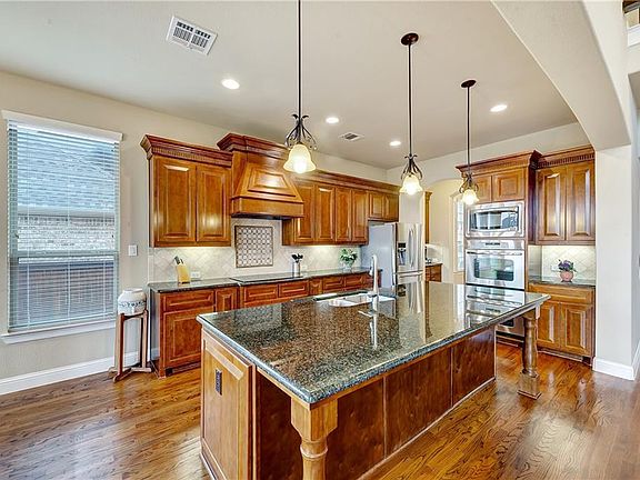 Ideally sited in The Highlands At Trophy Club, this outstanding home was quality constructed by the renowned K. Hovnanian Homes. With a functional floor plan and custom touches throughout, this lovely home conveys both elegance and relaxation into one. The two-story floor plan, with 4993 square feet, offers five bedrooms including a first-level master suite and guest room, four-and-a-half bathrooms, a dedicated study, a formal dining area, a culinary-inspired kitchen with adjacent breakfast area, a second-level game and media room, a utility area and a 3-car garage. Exquisite detailing prevails with rich hardwoods, gracious windows, iron spindles on a grand staircase, a plethora of granite and custom built-ins.