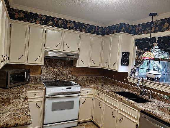 A well built single-family home on a large, shady lot with two entrance drives and a large workshop. Covered porch, fenced-in yard, and a small greenhouse. Tile flooring and granite countertops