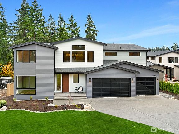 Phillips Ridge Phase 2 New Northwest Contemporary Luxury Homes on 1/4 Acre+ Homesites. OLYMPIC 3910: Covered porch, grand vaulted entry, main floor den, guest suite & 3/4 bath. Stunning two story great room with floor to ceiling ceramic tile fireplace, & covered outdoor living area. Full open rail custom staircase with hardwood staircase. Gourmet kitchen has high-end stainless steel appliances, grand quartz waterfall island, coffee bar & walk-in butlers pantry with second under mount sink. Primary suite boasts a freestanding soaking tub, frameless glass shower and heated floors. Includes an open bonus room, 4th bedroom w/ attached bath & large flat fenced backyard. Hot water recirculation system, A/C, heat pump. 17,410 sf greenbelt homesite