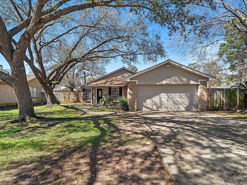 Investment opportunity, owners willing to do creative! Beautifully designed one-story home featuring a gorgeous cathedral ceiling in the living room, and expansive windows, welcoming in tons of natural light. The open and airy layout creates a warm, inviting atmosphere—perfect for both relaxing and entertaining. Nestled in a well-established neighborhood with highly rated schools, this home offers the best of convenience and comfort. Enjoy close proximity to grocery stores, popular restaurants, and easy highway access to I-45 or SH-99/Grand Parkway, for a stress-free commute. A rare find in a sought-after location! NOTES: New AC/Heater/HVAC installed 2021, new fence April 2025, new stainless steel dishwasher 2022, entire interior of home painted May 2025.