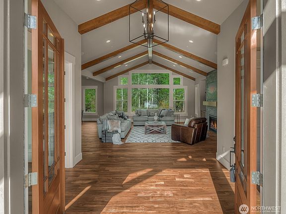 Discover the stately luxury of VB Homes! Nestled on 4.78 acres in an enchanting setting, this exquisite rambler offers both tranquility & seclusion. The kitchen features an expansive central island, top of the line appliances. A thoughtfully designed layout includes a spacious great room with exposed wood beams, a luxurious primary suite on the main level, a dedicated office, and a bonus room with a full bathroom located above the garage. Plenty of space for a workshop as well. Embrace outdoor living and enjoy the peaceful rural ambiance while remaining just mins from downtown Issaquah. Explore nearby parks and the beauty of Cougar and Squak Mountains. Approx 9 months to completion-still time for buyers to pick home finishes/colors