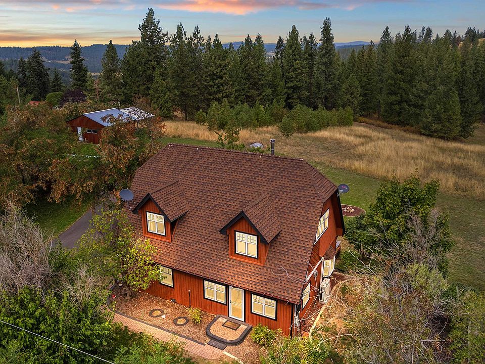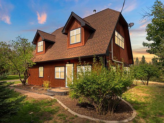 Embark on your next adventure at this 10-acre farmhouse haven. Discover an active zip line, lush fruit trees, and your private ATV playground. Connected with Inland Empire Paper land, offering miles of trails with a yearly IEP permit. Your acreage is an outdoor enthusiast's dream, with hiking, ATV, horse trails, hunting, fishing, and seasonal delights like snowshoeing, berry-picking, and even choosing your own Christmas tree! Inside, enjoy a modern county home with 3 bedrooms, including a primary suite, main-floor living, granite countertops, stunning hardwood floors, and an amazing patio/deck to enjoy the view of your property. Recent upgrades include newer: roof, water heater, paint, gutters, & Mitsubishi mini-split system. Added bonuses: generator panel and a propane stove! Location is A+, just 11 minutes from Green Bluff, 17 minutes from Yoke's, and 20 minutes from Costco! Ask about the interest buy-down credit and check out the virtual tour to begin your adventure!