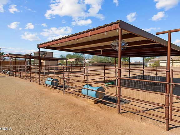 This property is turnkey. Less than a quarter mile off the paved road. Nice horse property ready for the season. Split floor plan, tile in main living areas, carpet in bedrooms. Granite countertops, stainless steel appliances. Paver patio with hot tub. 6 nice-sized horse pens with shades, 4 with automatic waters. Storage container converted to a tack room with a swinging saddle rack wall, covered hay storage that will hold up to six squeezes of hay. Covered trailer parking. Beautiful mountain views.