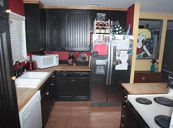 This updated/remodeled 1195 square foot single family home has 3 bedrooms and 2 full bathrooms. It is located at 2231 Fitzgerald Rd Simi Valley, California. All rooms have been updated with modern decor and colors. Master bath has been remodeled with a travertine tiled shower and floors, and new tub. The second bath has been updated with a vanity, tile, trim and colors. The kitchen has been remodeled with new cabinet doors and countertops with an eat in counter. With hardwood floors throughout and carpet in the bedrooms, this house is beautifully decorated and shows like new. Outside you will find a beautifully landscaped yard and a large covered patio. This is a perfect outdoor entertainer's home. This home is in the Simi Valley Unified School District. The nearest schools are Crestview Elementary School, Hillside Middle School and Royal High School.