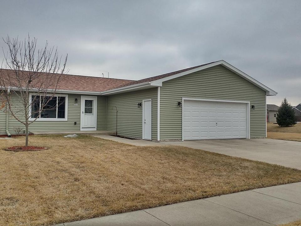 Amazing upgrades in this beautiful twin home. Three bedrooms, two full baths, two car insulated attached garage, new siding, new roof, new windows, new carpet, upgraded kitchen with solid wood soft close cabinets, quartz countertops, island, stainless steel appliances, tile back splash, and tile floors. The master bedrooms is large with a bathroom and walk in closet. The second bedroom has a sliding glass door leading a beautiful brick patio. A 10x12 storage shed has a roll up door for easy access. So much to offer and no detail was left out.