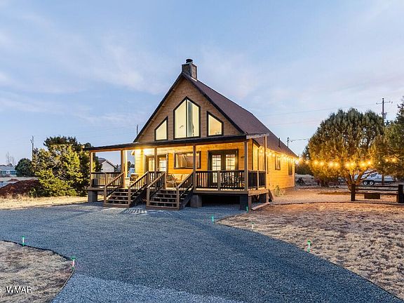 This updated 2-bedroom, 1.5-bath cabin with an oversized loft offers rustic charm and modern upgrades. The loft can easily serve as a third bedroom, home office, or bonus living space. Inside, enjoy two wood-burning fireplaces, new flooring, stylish light fixtures, and sleek quartz countertops in the kitchen and baths. A gravel round driveway provides easy access, while a large covered patio—complete with surround sound and LED can lighting—is perfect for entertaining. Most furnishings are included, making this mountain getaway move-in ready. Bedrooms are conveniently located on the main level, and the property sits near the old golf course for a peaceful setting just minutes from town amenities and very close to forest service roads and the old golf course.
