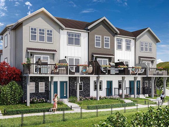 Explore a series of stylish heritage-inspired row houses located close to the center of our scenic Environment Reserve Park! This Heritage model A combines comfort and functionality, making it perfect for families and professionals. With 2 bedrooms, 2.5 bathrooms, and a flexible main-floor den, this expansive home is tailored for contemporary living. Upon entering, you will discover a bright ground-floor den or home office that includes a large window, a closet, and a handy powder room. Enjoy a beautifully landscaped front yard, a single attached garage, and additional parking in the driveway. The open-concept main floor features 9' ceilings and is bathed in natural light, creating a cozy and welcoming atmosphere for daily living or entertaining guests. The modern kitchen is equipped with quartz countertops, a breakfast bar, high-end stainless steel appliances, and a chimney-style range hood. Sliding doors lead to a full-sized balcony — perfect for unwinding or dining outside. On the upper level, there are two roomy bedrooms, including a primary suite that has a double access closet and a private ensuite with a stand-up shower and a sliding glass door. A second full 3-piece bathroom is available for the additional bedroom, which can also serve as a home office. The upper floor further includes a washer and dryer conveniently situated, a linen closet, and ample storage options throughout. This home is located in vibrant Springbank Hill and offers easy access to Aspen Landing, Rundle College, Griffith Woods, Ambrose University, restaurants, and senior care facilities. **The price includes GST.