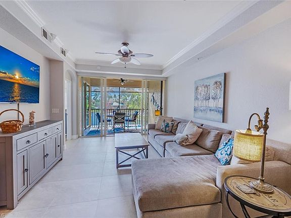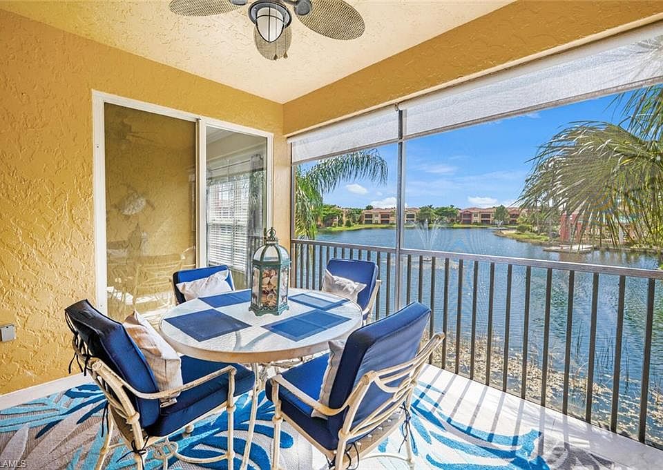 One of the best views in all of Rapallo! This condo is located within the interior of the community, away from outside roads, offering both privacy and convenience just a short walk to Coconut Point Mall. Turnkey furnished and move-in ready, this second-floor Condo offers spectacular views of the water, the community’s pools and amenities, and the western skyline—perfect for enjoying breathtaking Southwest Florida sunsets from your screened lanai or even while you are making dinner. The interior has been thoughtfully updated with newer appliances, AC, quartz kitchen counters, backsplash, crown molding, fresh neutral paint, and all newer tile flooring throughout. Both the master suite and great room open directly to the lanai, while the open den, currently used as an office, easily accommodates overflow guests. For peace of mind, this condo features a new roof, and a location outside the flood zone. This particular building is unique in that there is a large lake in the back and in the front of the building so that you have a view of a lake from every window. A short walk brings you to the heart of Rapallo’s resort-style amenities, including two lagoon-style pools, a screened junior Olympic lap pool, clubhouse with catering kitchen and library, a state-of-the-art fitness center with sauna and full-time fitness director, and five Har-Tru tennis courts with an on-site Tennis Pro. PRIVATE freshwater Beach. Residents enjoy a full calendar of social events along with bocce, botanical gardens, stocked lakes, and scenic biking and jogging paths. Also included is a Fishing Pier on the stocked lakes for those that enjoy fishing in their backyards. The community has exceptional activities including 3x a week Pool Volleyball which is a favorite for the year round and seasonal residents. Just a short stroll or golf cart ride takes you to Coconut Point Mall, now featuring new restaurants including Cheesecake Factory and Diviettos, as well as the newest retail shops such as Nordstrom, the Apple Store, and other high-end retailers. Rapallo has one of the best locations with private back roads where you can take a short ride in your Golf Cart to Coconut Point mall with fine dining, luxury shops, and specialty retail for everyone - no need to travel on a major road to get to your destination. With its prime interior location, stunning views, and unmatched amenities, this home offers the perfect combination of luxury, lifestyle, and convenience. Experience resort-style living at its very best.