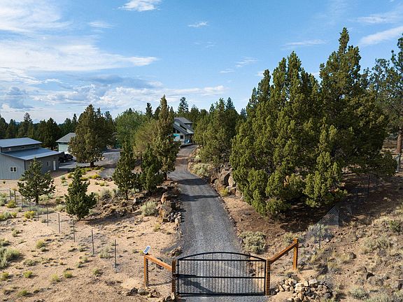 Located in the Sundance community, this 3.29 acre property offers privacy, functionality, and sweeping Cascade mountain views. The 3 bedroom, 2.5 bath home captures impressive vistas from the main living area and primary bedroom. Outside, two separate shops provide versatility: Shop One is 1,280sf, and Shop Two is 1,344sf - ideal for projects, storage, or recreational equipment. The property could easily be modified to accommodate horses. Multiple full RV hookup sites are in place, making this an excellent setup for RVs, guests, or extra storage needs. The fully fenced lot includes an electric gate with remote access. A hillside hot tub offers a quiet retreat with its own view, while community access to adjacent BLM land makes exploring the outdoors easy. With space for hobbies, toys, and outdoor living, this property blends acreage, views, and shop space in a convenient location near Bend.