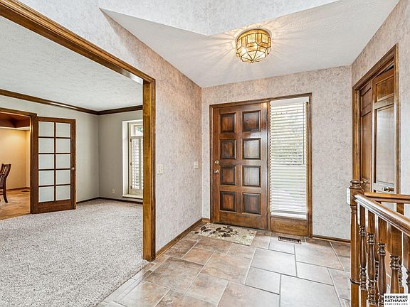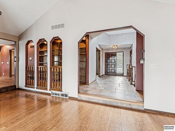 Amazing property on one of the best lots in Riverside Lakes, offering 90 feet of shoreline with breathtaking lake/island views. This spacious ranch features an oversized garage & a walkout lower level. The moment you step inside, you’re greeted by floor to ceiling windows showcasing the stunning views & a beautiful double-sided stone fireplace. The large kitchen offers roll-out shelving, new appliances, a custom island, & a formal dining area. The main floor also includes an office, a renovated laundry room, & a huge primary suite w/ ¾ bath & a walk-in closet. The walkout basement has a spacious family room, fireplace, 2 bedrooms, a remodeled ¾ bath, & a versatile multi-purpose room w/2nd laundry. Enjoy resort-style outdoor living with a three-tier backyard, outdoor bar, gazebo, dock, & boat lift—all included. Beautifully landscaped grounds, water feature & zero entry sandy beach. Pristine condition & unbeatable lakefront lifestyle just minutes from West Omaha.