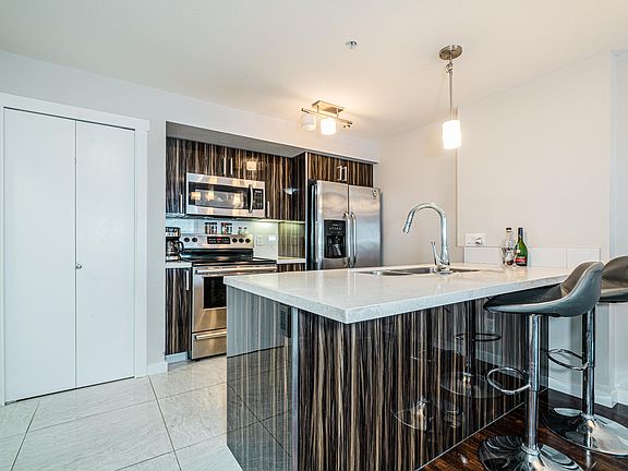 Great location on quiet Southern face of building. Open concept one bedroom with top brand Stainless appliances and beautiful quartz counter tops, dishwasher and front load washer/dryer. Self closing cabinets in rich finishes. Walking distance to all amenities with the central core area of Maple Ridge. 1 block to West Coast Express and all shopping, 1 underground Secured Parking. Open house Sat.&Sun. Nov. 8&9 2:00-4:00PM.