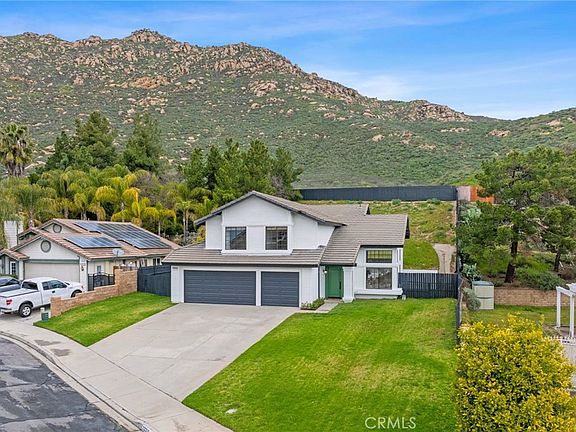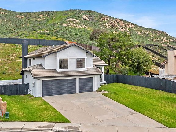 Discover your meticulously crafted dream home on the top of Box Springs hills at the end of a quiet cul-de-sac. With canyon views in the back and stunning city light scenery from the front. This home sits on a spacious 14,000 sqft lot complete with a 3 car garage and extra parking in the driveway. This property has undergone a custom remodel complete with exterior and interior paint and vinyl flooring throughout. Boasting four bedrooms and two and a half bathrooms. It a seamlessly blends of modern comfort in an elegance lifestyle. As you enter you are greeted by Cathedral ceilings and designer lighting for that touch of charm. Both Dining and Living room have large picture windows and lashings of natural light. The spacious kitchen features new stainless steel appliances, new counter tops and ample counter space with a Breakfast Nook. Your oversized family room sits just off the kitchen with its cozy fireplace, a perfect place to gather with family and friends. Head upstairs to your Primary Suite with gorgeous views of the private mountains. The en-suite features double sinks, deep soaking bathtub and glass encased shower along with a huge walk-in closet with built in racks. Down the wide hall holds three additional bedrooms equally as spacious with roomy bathroom. Enjoy the tranquility of your backyard with sound of continually running waterfall from the neighbors cliff. It is the perfect for entertaining or relaxing on the new oversized patio. Just off the side is direct bathroom access from the outside. This residence offers proximity to Box springs Elementary, convenient community options make this property a prime choice and easy access to the 60/215 freeway. Imagine your life in this turnkey house with highly functional floor-plan and unique lot where every detail has been carefully considered. Seize the opportunity to make this extraordinary property your own. Call for a private showing