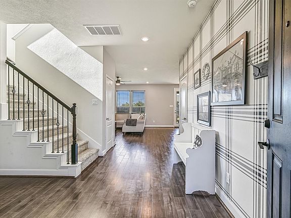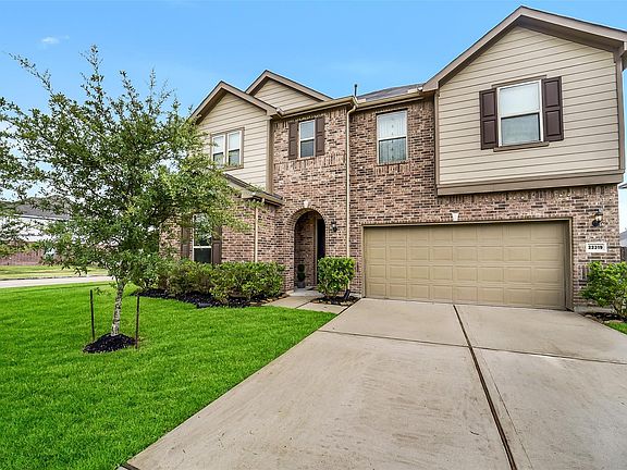 Welcome to 22319 Davenport Downs Ln, a beautiful home situated on a corner lot in Williams Ranch. This two story home offers a functional and flexible floor plan with open-concept living, 3 bedrooms, a dedicated home office, and an upstairs gameroom. The open-concept living space features wood-look tile flooring, a bright family room, and a stylish kitchen with abundant cabinet space, subway tile backsplash, stainless steel appliances, a stainless steel farmhouse sink, and a large island with breakfast bar seating. The spacious primary suite includes a generous walk-in closet and a spa-inspired bath with dual sinks, a soaking tub, separate shower, & beautiful finishes. Enjoy outdoor living under the covered back patio overlooking the expansive yard — the patio has a gas line in place for a future outdoor kitchen. Located on the corner of a cul-de-sac street that is within walking distance to the community pool & playground, and just minutes from 59, Brazos Town Center, schools, & more.