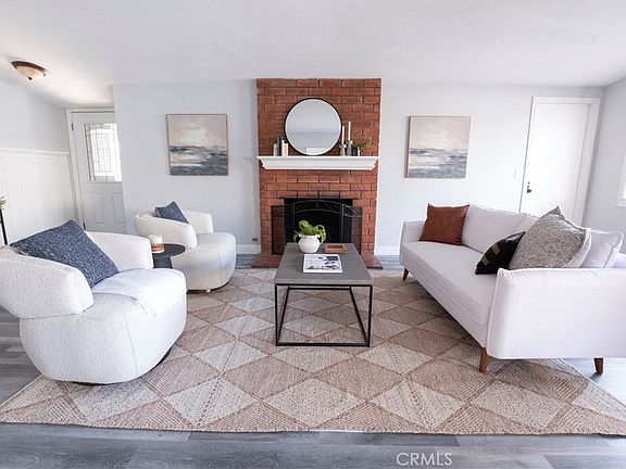 Offering 1,910 sq ft of living space on a 6,007 sq ft lot, this 4-bedroom, 2-bathroom home has been thoughtfully upgraded and expanded from its original 1956 build. The open layout offers an intimate living room with a cozy fireplace and a central kitchen that overlooks an expansive family room, making this home ideal for entertaining and everyday living. The new upgrades feature quartz counters, vinyl flooring throughout, newer appliances, wainscotting, bathrooms, ceiling fans, a newer roof, and new paint.