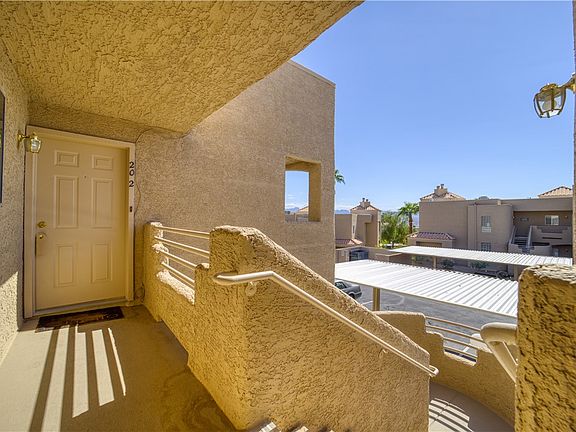 Chance Opportunity to own a condominium at the Colorado Bay Club in Laughlin Nevada, a gated community. And priced so that you can make it your own. This second story offers quiet times to relaxing on those cold winter nights in front of its wood-burning fireplace, no neighbors above you. Includes kitchen appliances, stackable washer, and dryer. 2 bedrooms, 2 bathrooms with a balcony off the living room, the primary bedroom has its own separate balcony. Storage room. Boat or RV parking up to 26 . The community pool is heated all year, spa, pool area has several cabanas (what more could you want?). And, if you ever want to venture out of this oasis, you could wonder down to the Laughlin Casinos, restaurants, or the Colorado River for fun in the sun, and it is only a hop, skip and a jump away. HOA covers MGMT, trash, water, exterior maintenance. Not age restricted. Two pets under 35 pounds are welcome. You may use as a rental if its longer than 30 days.