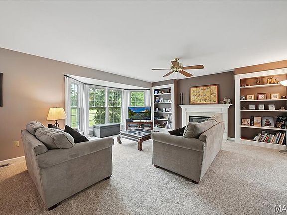 Welcome to this stunning 2-story home in the highly sought-after Dartmouth subdivision! Nestled on a quiet cul-de-sac and backing to scenic common ground, this residence offers the perfect balance of tranquility and convenience. Enjoy peaceful views from the expansive composite deck—ideal for morning coffee or weekend gatherings. Inside, a grand 2-story foyer welcomes you into formal living and dining rooms. The spacious family room features a 4-bay window, built-in bookshelves, and a cozy fireplace, flowing seamlessly into the bright kitchen and breakfast room. You'll love the abundance of cabinetry, center island, walk-in pantry, and stainless steel appliances. Upstairs, retreat to the luxurious primary suite with vaulted ceiling and spa-like bath. Three additional bedrooms, a bonus loft, and main floor laundry offer all the space and comfort you need. The walk-out lower level is ready for your finishing touch. New roof in 2025, irrigation system, and a 3-car garage complete the package. All located near top-rated Rockwood schools, Babler State Park, Wildwood Town Center with shops, dining, theater, hotel—and direct access to the Wildwood Greenway with biking and walking paths. This is more than a home—it's a lifestyle!