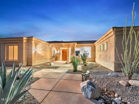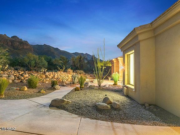 Discover refined desert living in one of Tucson's most prestigious gated communities--Pima Canyon Estates. Nestled on a private one-acre homesite with breathtaking Catalina Mountain views, this 3,316 sq. ft. residence embodies sophistication, serenity, and the true spirit of the Tucson lifestyle. Every detail of this home reflects timeless craftsmanship, from the rich mesquite wood flooring and custom hickory cabinetry to the 8-foot alder interior doors that elevate the home's warm, organic aesthetic. The north-south orientation fills each room with soft natural light while maximizing mountain and desert views. Designed for both intimate living and effortless entertaining, the spacious great room flows seamlessly to the outdoors, where a PebbleTec pool and spa create a private resort oasis Gather around the poolside fireplace with guest seating, framed by lush desert landscaping and mountain silhouettes that define Tucson's desert luxury. With three bedrooms and four baths, this home offers versatility and privacy for family and guests alike. The chef's kitchen, open-concept living areas, and expansive outdoor spaces make this residence ideal for year-round enjoymentwhether you're watching the sunset from the patio or hosting a dinner under the stars. Located just minutes from La Encantada's premier shopping and dining, world-class golf, hiking trails, and top-rated schools, this Pima Canyon gem is more than a homeit's an invitation to experience the beauty and ease of Tucson luxury living.