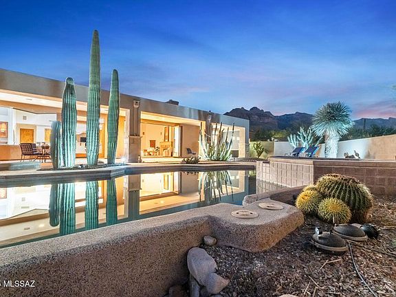 Pebbletec pool and spaPoolside fireplaceLush desert landscapingTimeless craftsmanshipBreathtaking catalina mountain viewsPrivate resort oasisMountain silhouettes