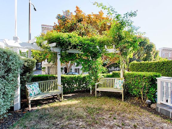 This charming Pacific Heights single family home is a true classic, situated on Jackson Street and detached on three sides. It features a serene courtyard patio and a sunny entry garden, perfect for relaxation. The house comprises three bedrooms, two and a half bathrooms, and generously proportioned living spaces that seamlessly connect to outdoor areas. The freestanding garage with skylights, accessed from Bromley, provides convenient parking and opens directly onto the courtyard garden. Recently renovated, the house boasts elegant rooms with soaring ceilings, numerous custom built-ins, and requires minimal stairs to access the living areas. This coveted location in one of San Francisco's most desirable neighborhoods puts you just steps away from boutiques, restaurants, cafes, and parks in Pacific Heights and Upper Fillmore.