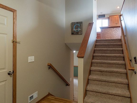 Start packing! Exclusively listed by Angie Van Eman-Riley: American Way Realty, 507.381.8961. Brand new to the market is the move-in ready home you have been searching for. Warm and inviting, the fresh neutral décor of the main floor open concept living room, dining area and kitchen are perfect for entertaining. Durable laminate flooring run seamlessly throughout the dining area and kitchen and the entire space is topped off with a stylish vaulted ceiling. Off of the dining area is sliding patio door access to the newer 13' x 12' deck and beautiful, expansive field view. The kitchen offers modern slate appliances, functional center island including breakfast bar seating, recessed lighting, and plenty of cabinetry. The main floor boasts a spacious master bedroom with walk-in closet and walk-through access to the main floor full bathroom. Second bedroom with large closet, and hallway linen closet storage round out the main floor. Downstairs you will find a great sized family room with daylight windows, two additional bedrooms, ¾ bathroom, laundry/mechanical room, and under stair storage. Outdoor amenities include sheetrocked 3 stall garage, ample green space, mature landscaping, and large garden area.