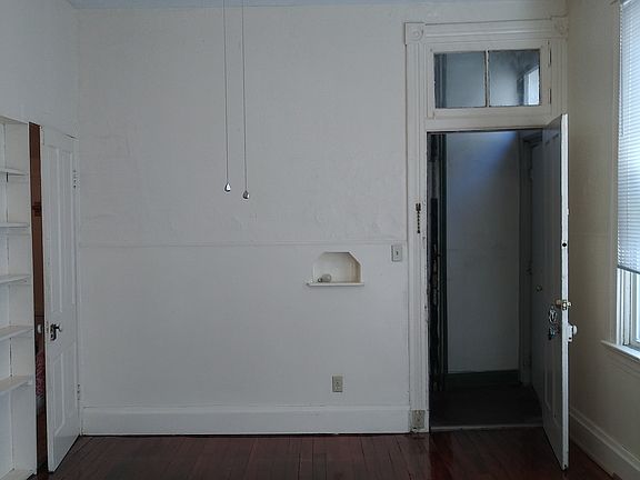 Large rooms with high ceilings and beautiful original hardwood floors.