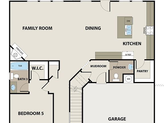 PBG Built Realty, The Bedford Two Story floor plan. Lot 52. * 5 Bed / 3 1/2 Bath Approx. 2608 sq. ft. * Two Story Foyer. * 3 side Brick/2 car garage. * Back covered patio. * Guest Bedroom on the main/Master Bedroom on second floor. * Family/Dining room. * Island. * Fireplace color Roca Carrara * Walk in closets. * Stainless steel appliances: Electric double over/cooktop/dishwasher/microwave. * Cabinets: White. * 2 Pendants lights. * Kitchen Granite: Dallas White * Bathroom: 2/3/4 Granite Dallas White * Backsplash: Desert Gray 3/6 with white grout. * Cabinet knobs: Satin Nickel. * LVP Plank (color Aruba) in the foyer/hallway/mud room/powder bath/kitchen/breakfast/dining room/laundry room/master bathroom/bath 2. * Carpet color Dove Master bedroom and closet, 2/3/4 Bedroom and Hallway. Stairs open rails w/treads. This home is UNDER CONSTRUCTION (*Stock Photos are not of the Actual Home, however the Same Floor Plan. Stock photos may contain options or upgrades that are not in actual home. *) Preferred Lender incentives: Seller will contribute up to $10,000 for Closing cost!