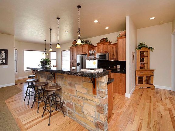 Peaceful living at it's best! Enjoy this quiet, 5 bedroom home with finished walkout on a tremendous 38 acres and a large, enclosed barn! Hickory hardwood floors in entry and kitchen, 10ft ceilings and 8ft doors on main level! Open floor plan featuring a spacious living room with gas fireplace, stone surround and ceiling fan. The eat-in kitchen offers granite tile countertops, newer stainless steel appliances, hickory cabinets and beautiful island, breakfast bar, deck access and bay windows for lots of light. Formal dining room with coffered ceiling. Large master bedroom with coffered ceiling and 5pc, travertine bath. 2 add'l beds on the main level share a Jack and Jill bath with dual vanity. The finished basement features a beautiful rec room with stained concrete floor, 2 add'l bedrooms and 3/4 bath. Outside is a fenced backyard and the 48'x40' barn with electricity and water.