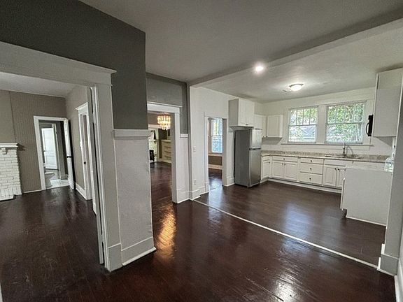 Beautifully remodeled home featuring a large wrap-around porch, stained glass accents, true hardwood floors, and a cozy fireplace. Enjoy a spacious sunroom, stainless steel appliances, smart thermostat, and elegant chandelier. Classic charm meets modern comfort in this stunning rental! Section 8 welcome to apply!