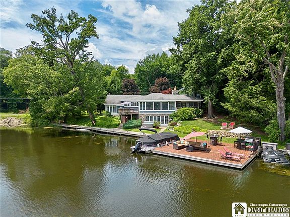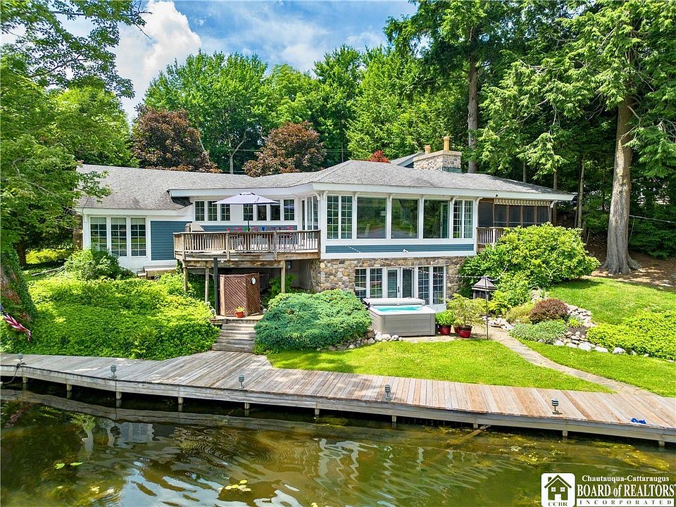 Welcome to Mad Dock House! Stunning Lake vistas, authentic architectural details, nearly 2,200sqft, and approx. 250’ of lake frontage - Do not miss this Findley Lake Beauty. Constructed in 1940 and reimagined by Ligo Architecture, this 4 bed/3 bath home has it all. At entry, you’re met with Panoramic views, beamed and vaulted ceilings, a wood burning stone fireplace, and a wonderful kitchen. Further on the main level, enjoy two primary suites; one of which features a stone gas fireplace and the other a wall of windows overlooking the lake. The great room is perfect for all four seasons with an adjacent screened in three-season room. A charming lower level offers a cozy bedroom, recreation area, Murphy bed, ample space for an office or game table and easy access to the outdoor living spaces. The exterior of the home is a dream with manicured grounds, hot tub, terraced seating area, and one of the largest decks on the Lake. The water is never far away and neither is the boat - an evening cruise has never been easier. Rounding out the property there's a two car garage with an unfinished flex space above. For those who have been looking to make the dream a reality, welcome home.